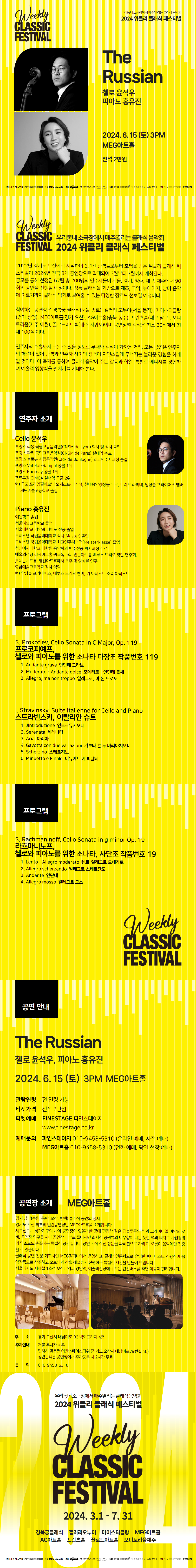 이번 공연은 '더 러시안'이라는 주제로, 러시아의 대표적인 작곡가인 프로코피예프, 스트라빈스키, 라흐마니노프의 소나타로 프로그램을 구성하였습니다. 이 프로그램은 첼로와 피아노의 아름다운 조화 속에서, 러시아의 감성과 정서가 담긴 음악 세계로 여행할 수 있는 특별한 기회를 제공합니다.