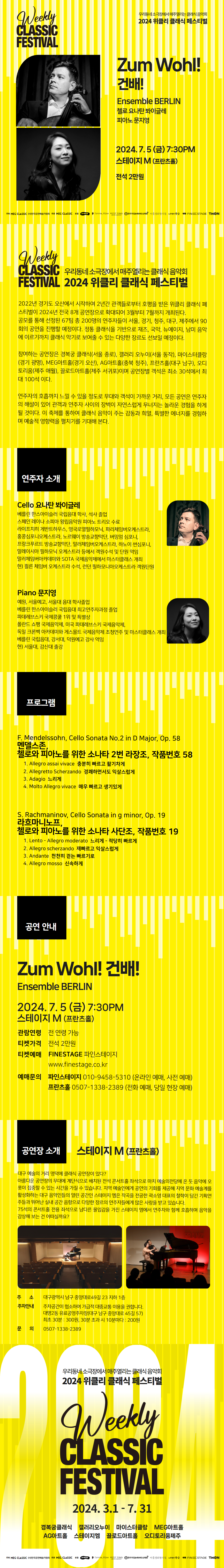 🎤2024 위클리 클래식 페스티벌의 모든 공연은 출연자의 해설이 더해져 음악을 더욱 친근하게 즐기실 수 있습니다.