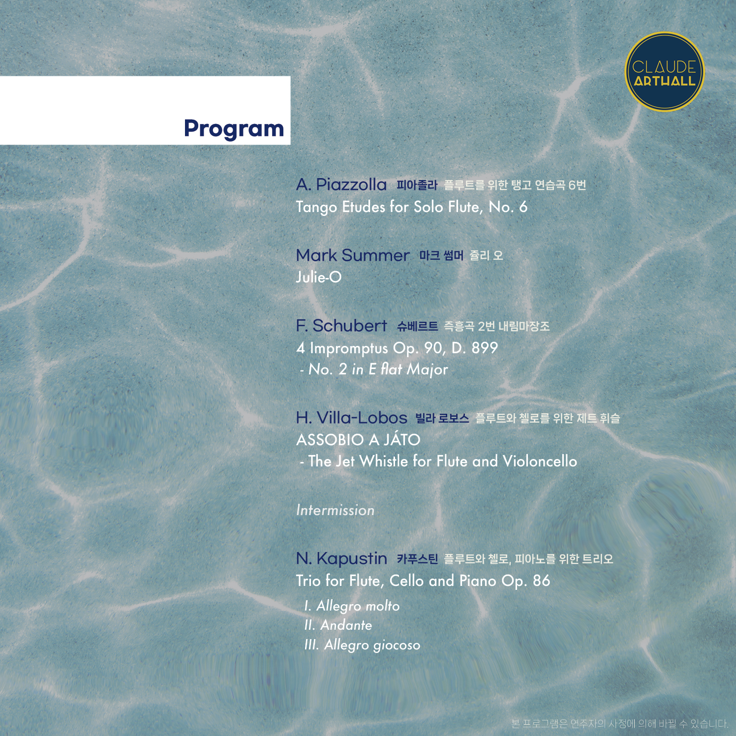 즐거운 음악여행으로 끌로드아트홀 관객분들을 초대합니다!