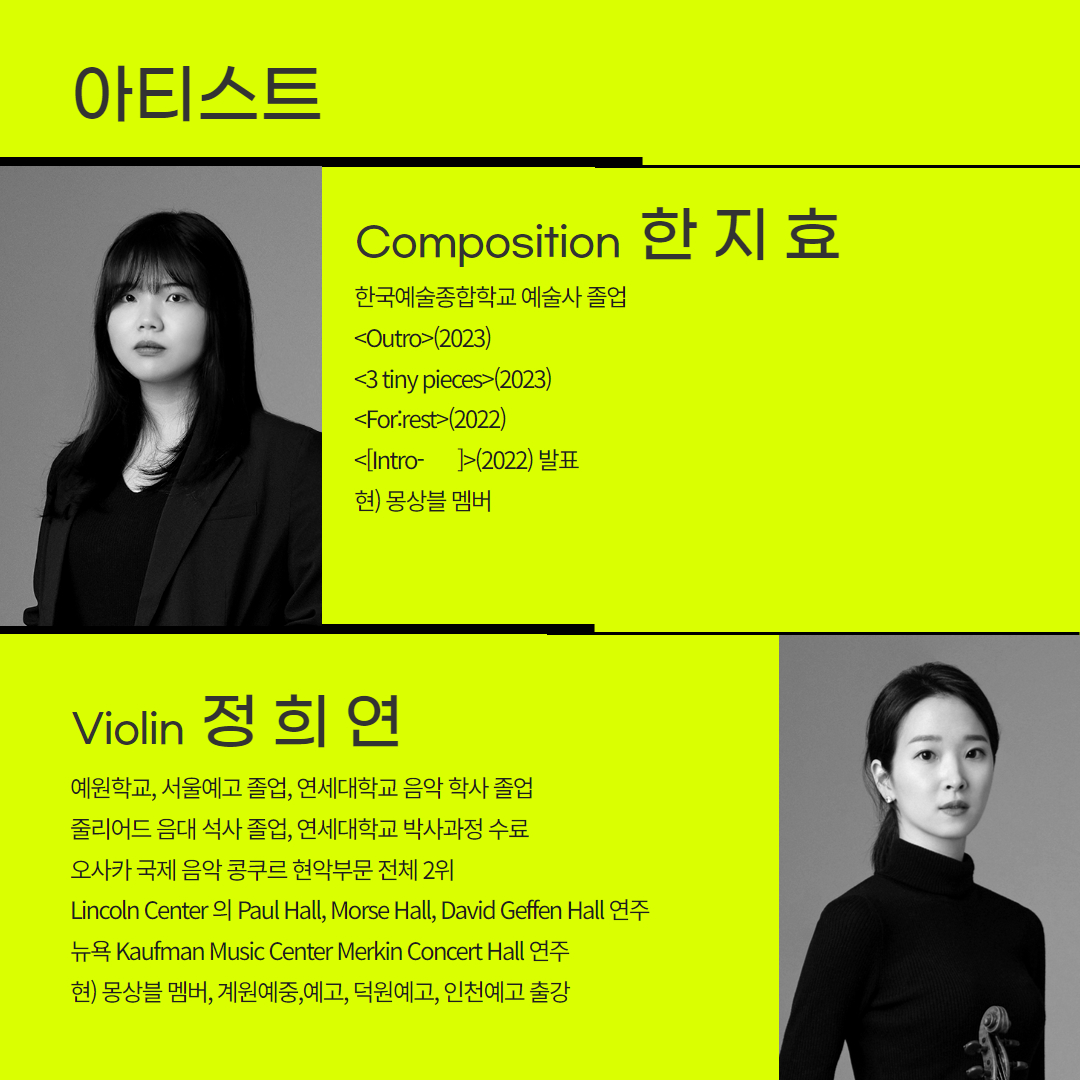 클라리넷 강미루, 기타 이선용, 피아노 정태민, 첼로 김송은, 바이올린 정희연, 작곡 한지효