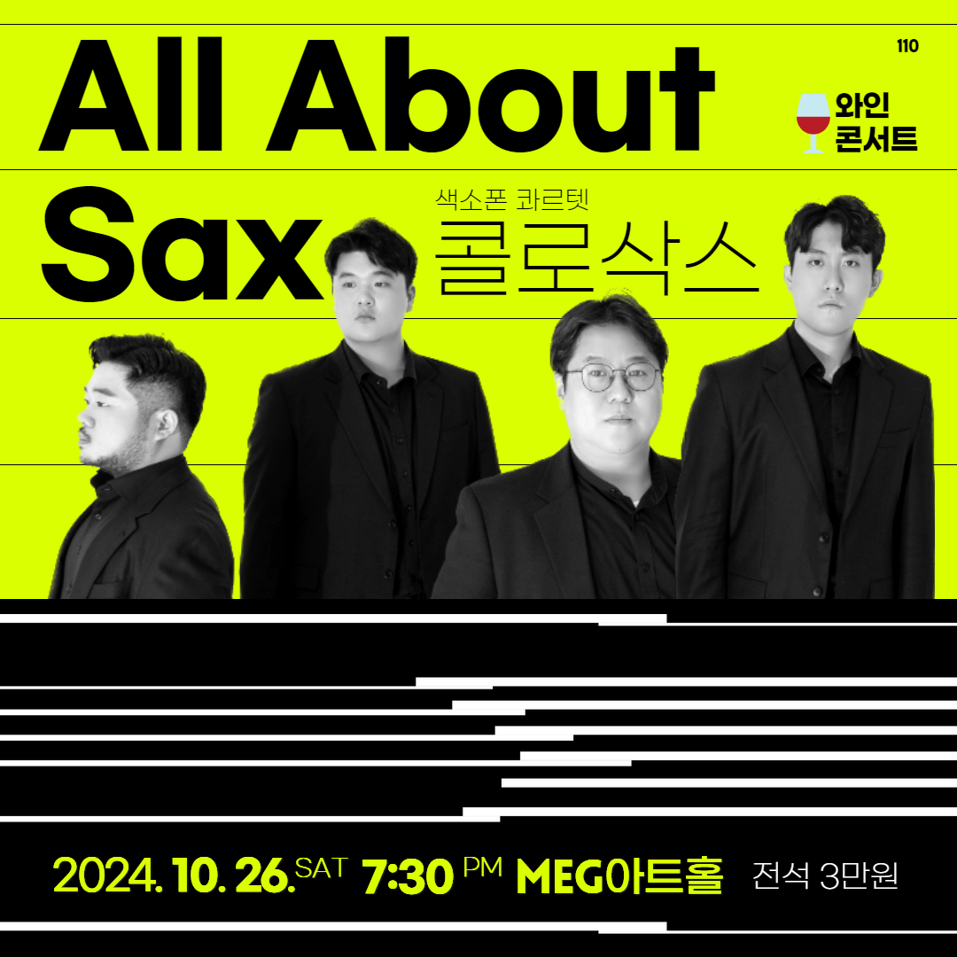 관객들에게 색소폰의 기원과 소외되었던 과거, 그리고 현재에 활용되는 매력과 영향력까지 그 다채로움과 무궁무진한 매력에 취할 수 있는 시간을 콜로삭스 색소폰 콰르텟이 선사합니다.
