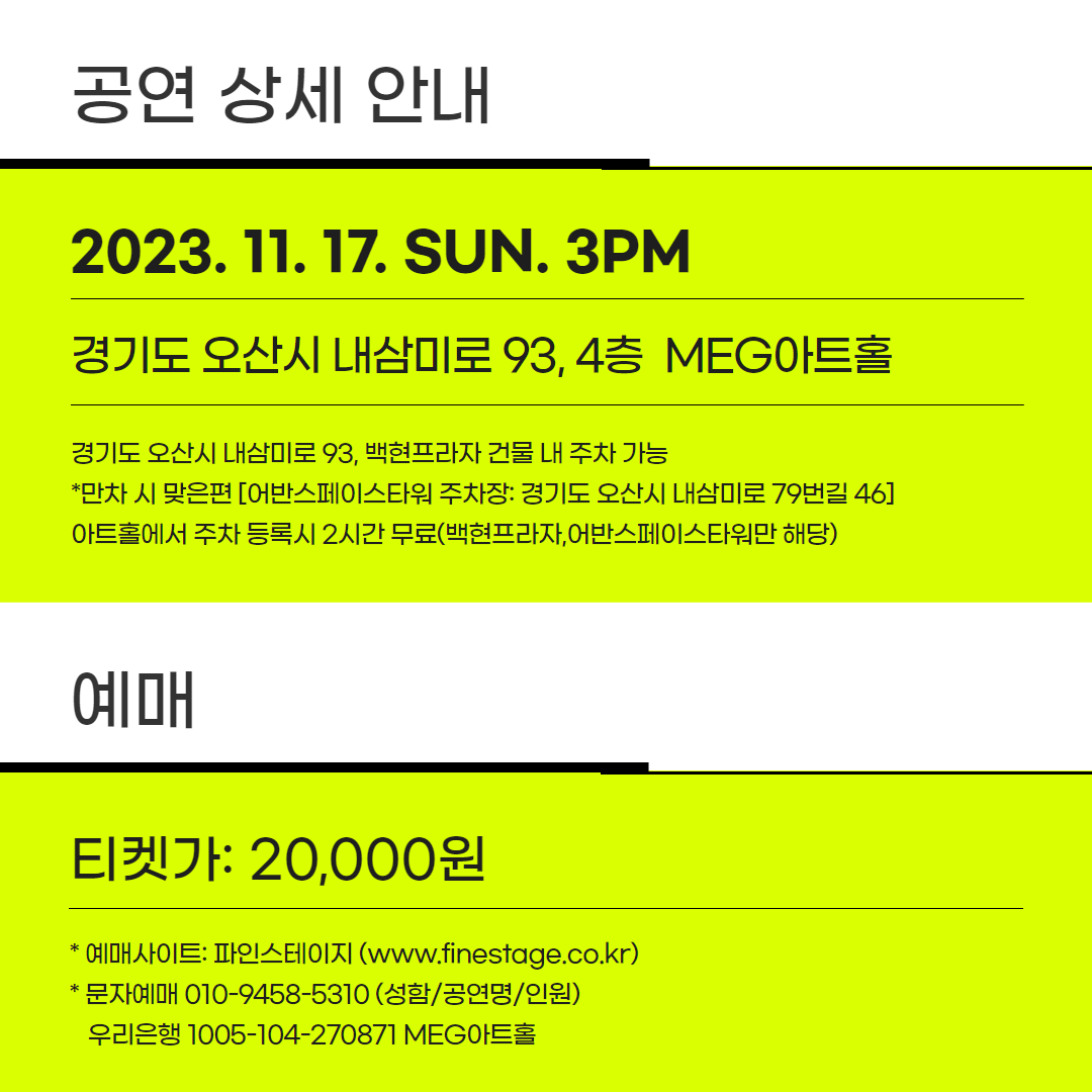 🟢 장소: MEG아트홀 @meg_arthall (경기 오산시 내삼미로 93 백현프라자 4층)