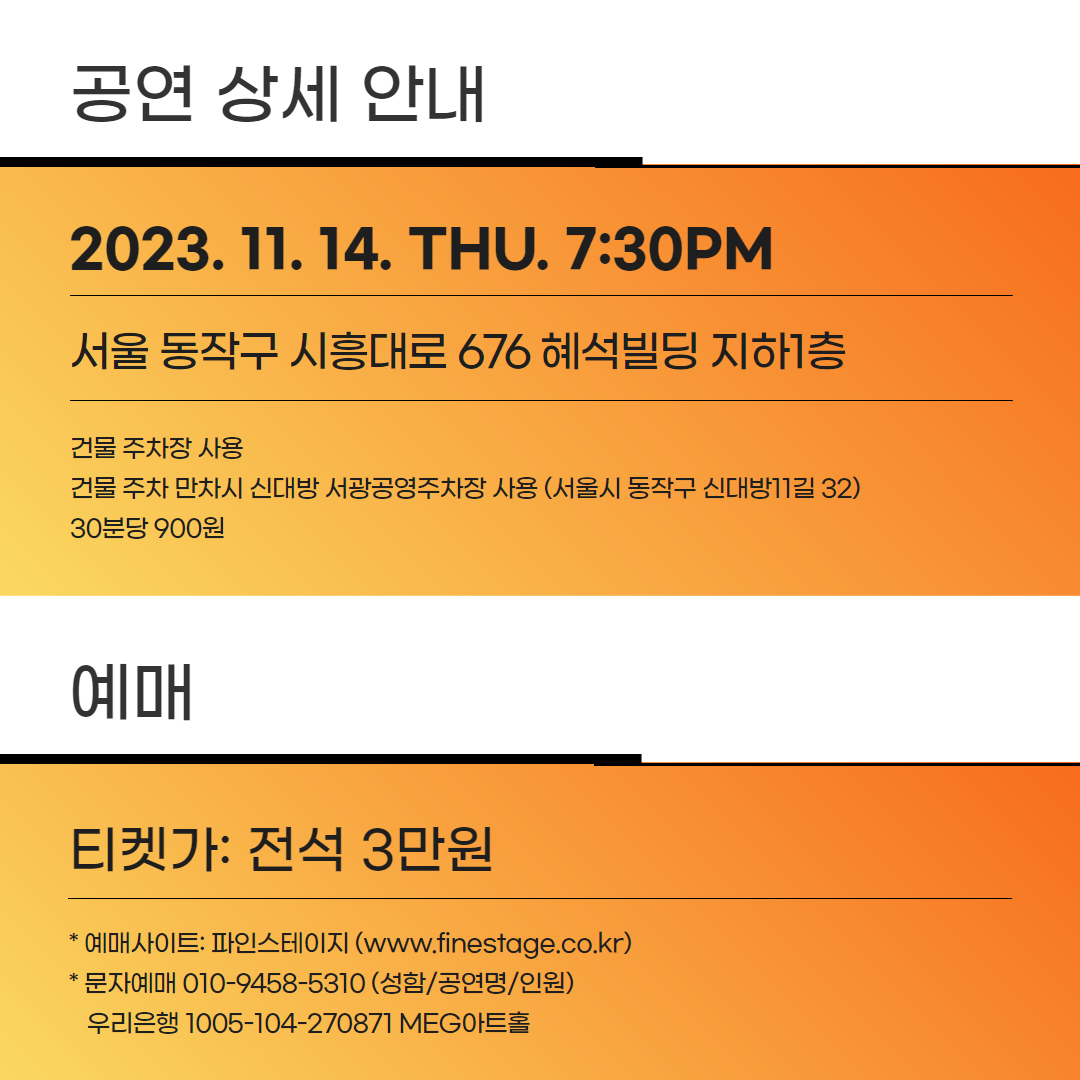 ⚪️ 티켓가격: 전석 3만원 (비지정석/ 당일 30분 전 하우스 오픈)
