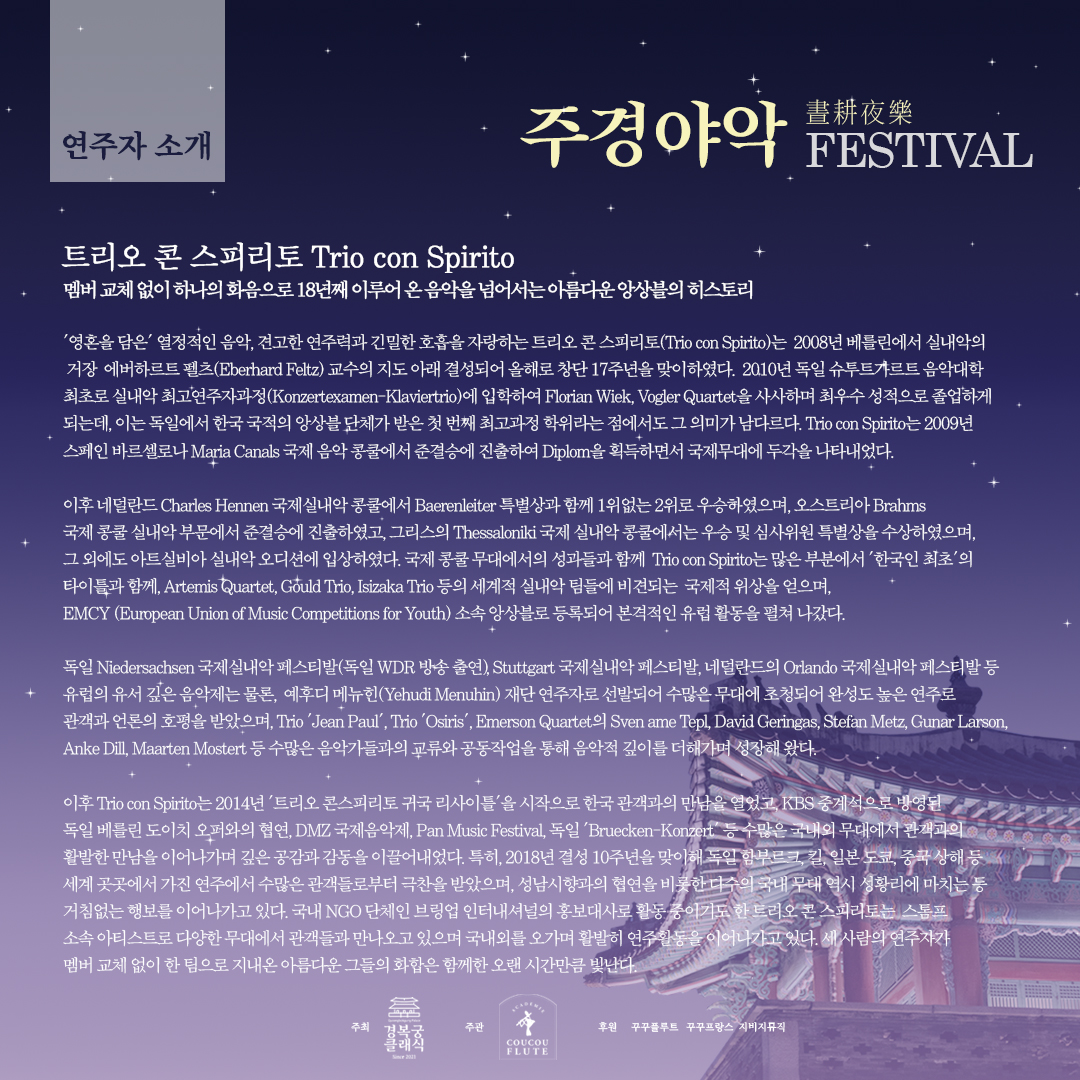 전문연주자들의 무대인 주경야악 스페셜 스테이지로 “트리오 콘스피리토” 공연이 펼쳐집니다.