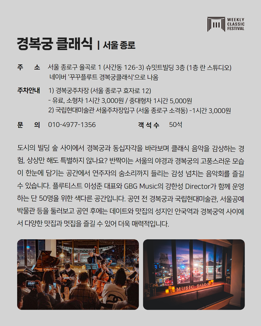 - 경복궁클래식 010-4977-1356 (전화 예매, 당일 현장 예매)