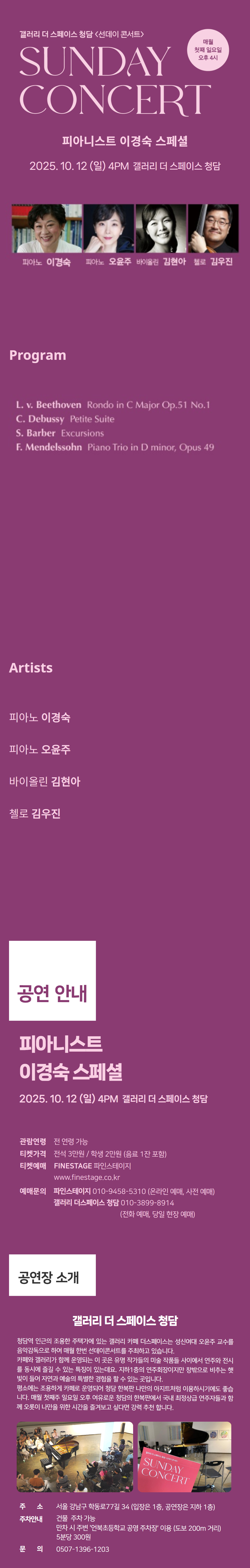 - 갤러리 더스페이스 청담 010-3899-8914 (전화 예매, 당일 현장 예매)