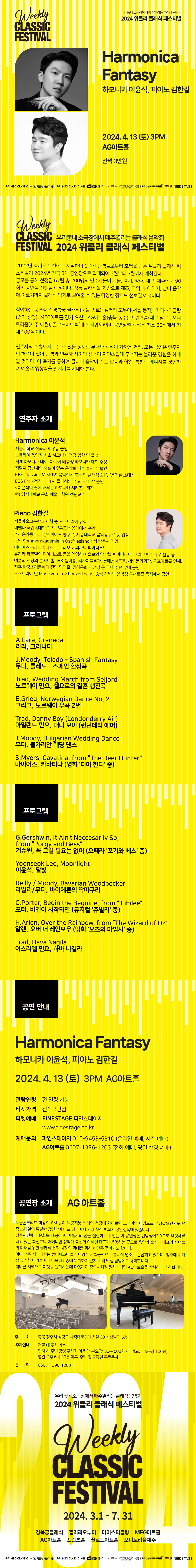 🟡 Harmonica Fantasy 하모니카 이윤석, 피아노 김한길 @ AG아트홀 (충북 청주)