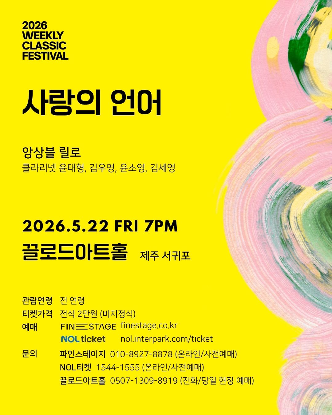 [제주 서귀포] 5/22(금) 7PM 사랑의 언어 - 앙상블 릴로 | 2026 위클리클래식페스티벌